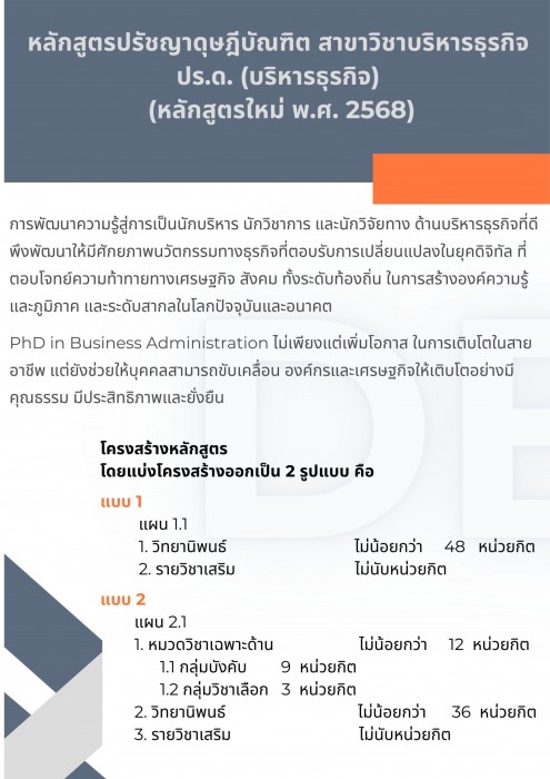 หลักสูตรปรัชญาดุษฎีบัณฑิต สาขาวิชาบริหารธุรกิจ (หลักสูตรใหม่ พ.ศ. 2568) มหาวิทยาลัยราชภัฏเชียงใหม่