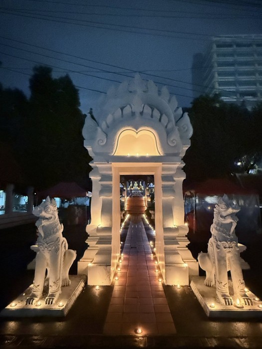 ในตอนค่ำ สโมสรนักศึกษาคณะวิทยาการจัดการ เป็นตัวแทนคณาจารย์ บุคลากร นักศึกษาที่ทำกิจกรรมทำผางประทีป นำผางประทีปที่รวมกันทำในวันนี้ จุดบูชาพระพุทธรูปประจำมหาวิทยาลัย และพระพิฆเนศวร ในวันลอยกระทง หรือประเพณียี่เป็ง
